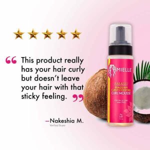 Every curly-haired girl’s dream is to have soft, defined, frizz-free curls. With Mielle’s Brazilian Curly Cocktail collection, you can finally make it a reality! Our organic hair mousse blends certified organic ingredients like babassu, buriti buriti, muru muru, and copaiba oils for lasting hydration that locks moisture into curls while providing ultimate definition. Apply to clean, damp hair and style the way you want. Combine with our Brazilian Curly Cocktail Curly Cream for healthier, more beautiful curls!